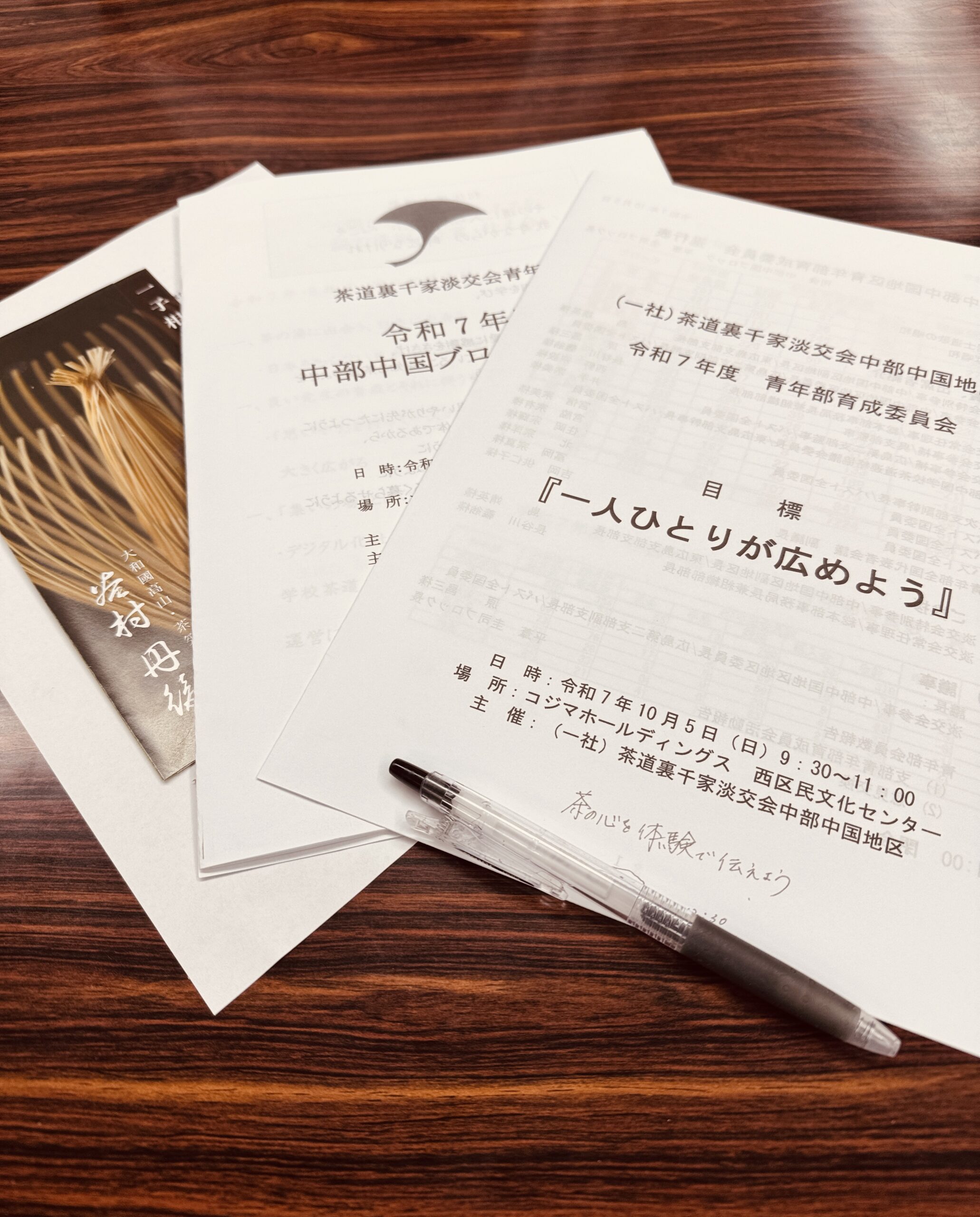 2025年10月5日(日)9時30分より、裏千家淡交会中部中国地区の令和7年度【青年部育成委員会】を開催いたしました。